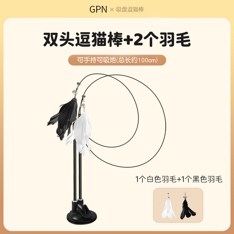 升级款双头吸盘逗猫棒【共2个白色羽毛+2个黑色羽毛 双倍快乐】