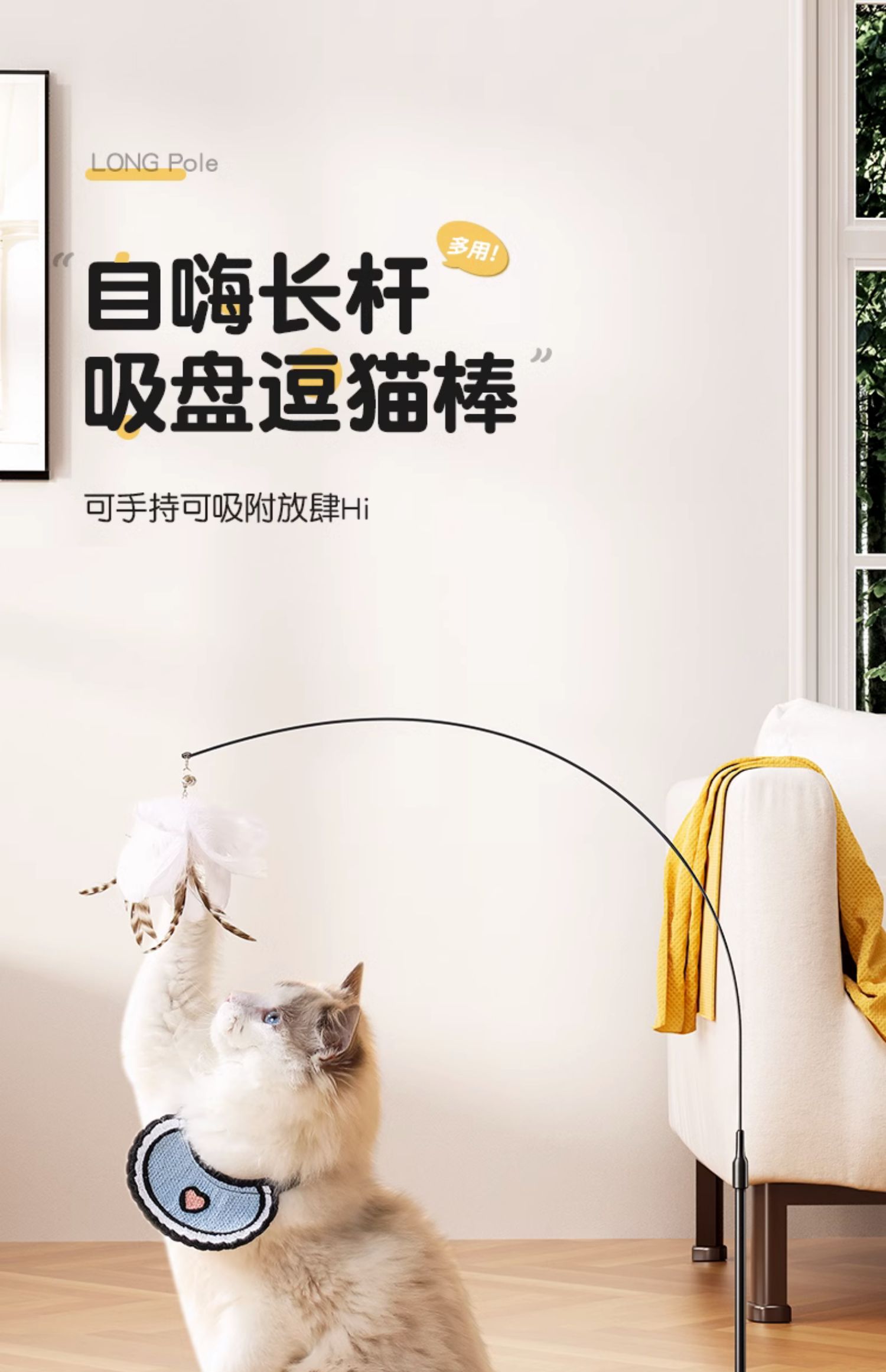 超强吸盘逗猫棒【自带一个白色羽毛】